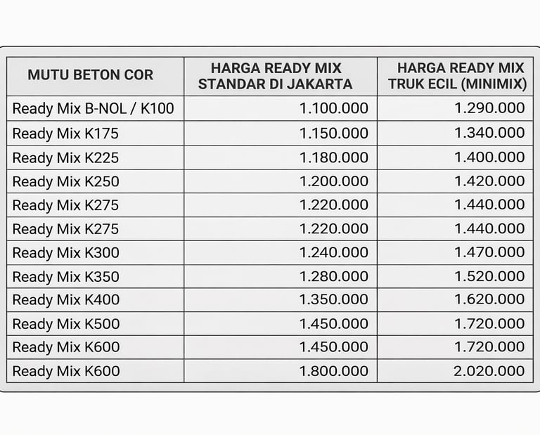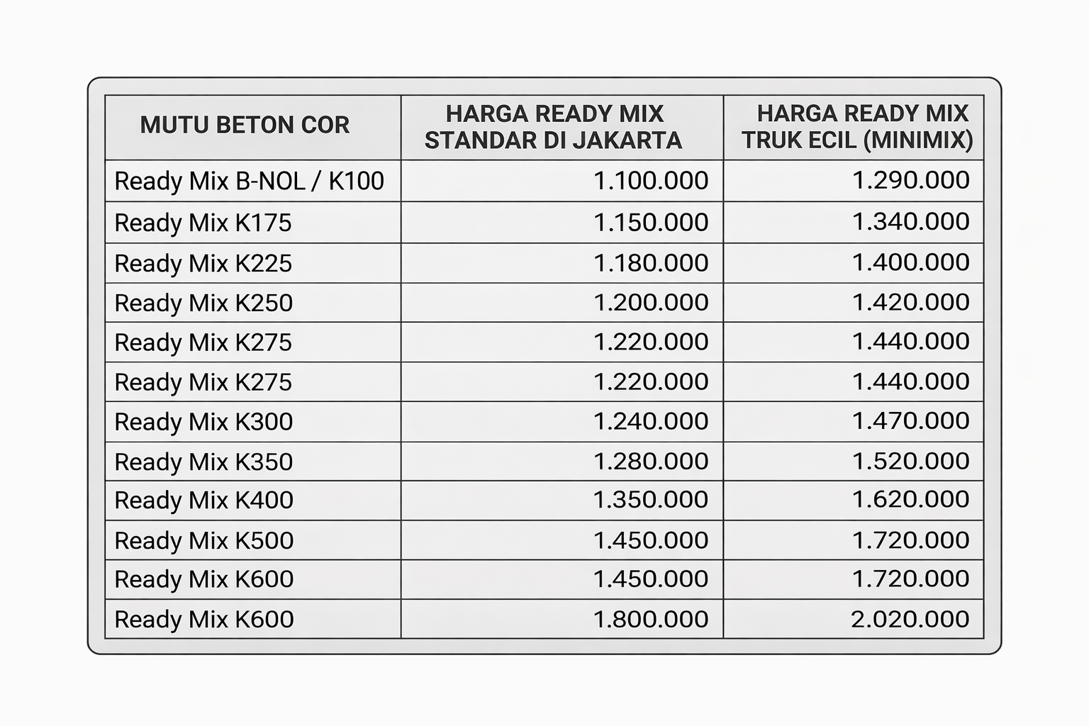Segera hubungi kami sekarang dan dapatkan harga spesial beton Readymix dengan kualitas terjamin serta pengiriman cepat langsung ke lokasi proyek Anda.